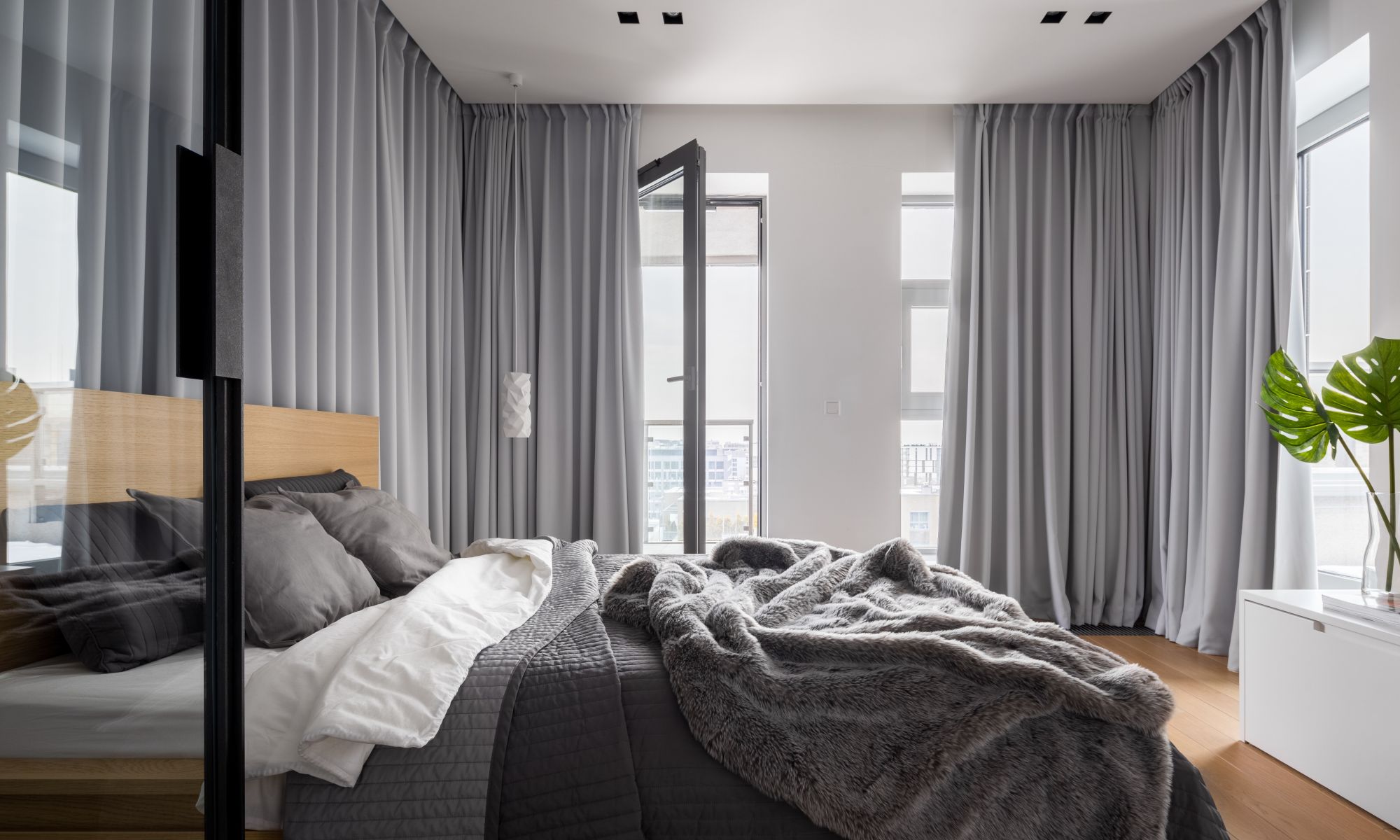 Somfy's motorised Glydea track is sought after for more sophisticated projects. Motorised sheer and block out curtains are the ideal choice for conference areas, hotel suites, high-class apartments and homes. With a simple click of a button or tug on the fabric, you can have your curtains open or withdrawn.