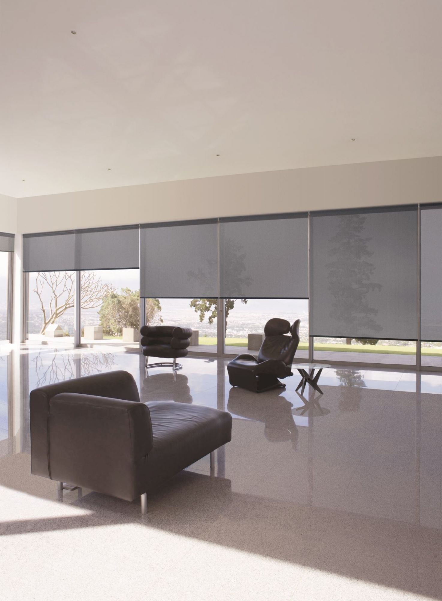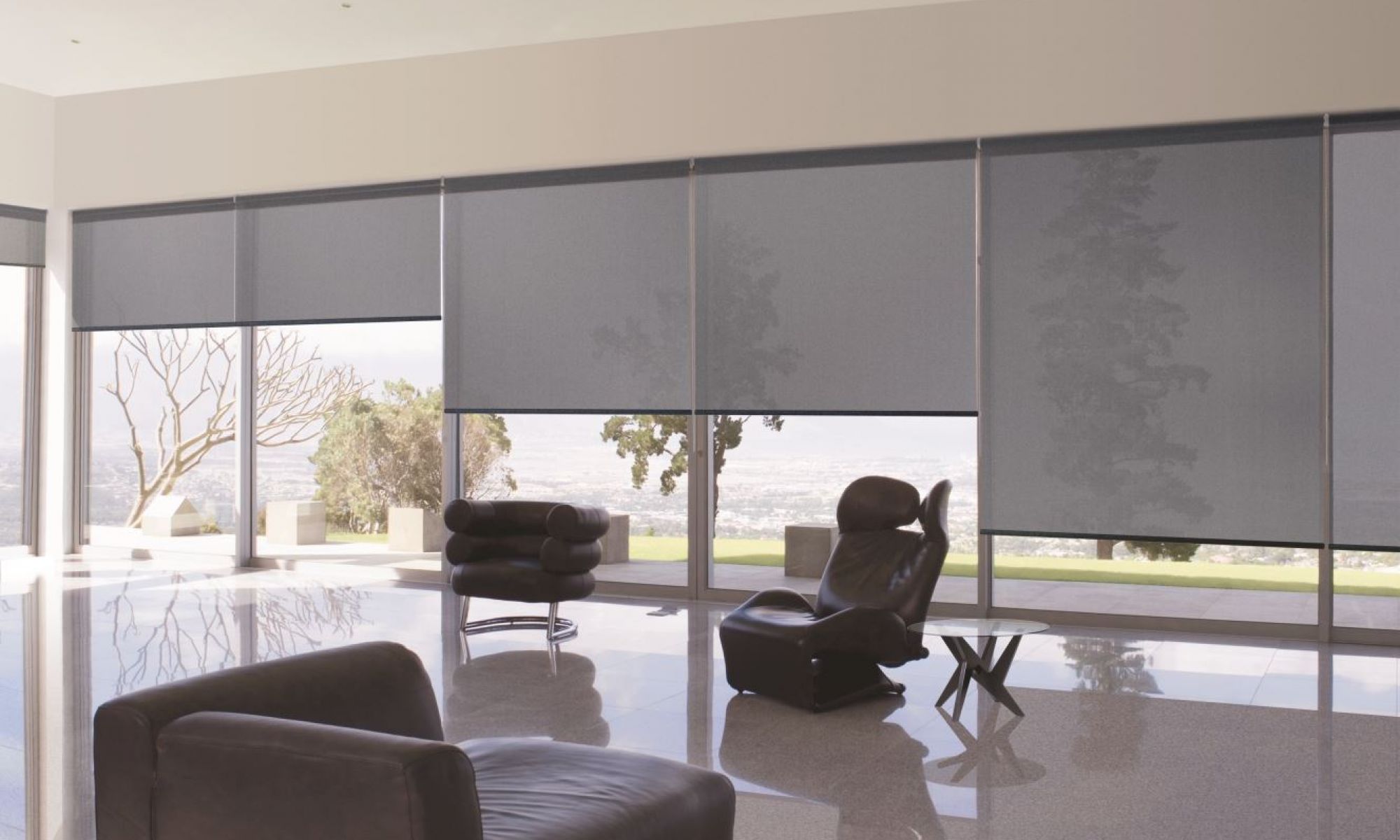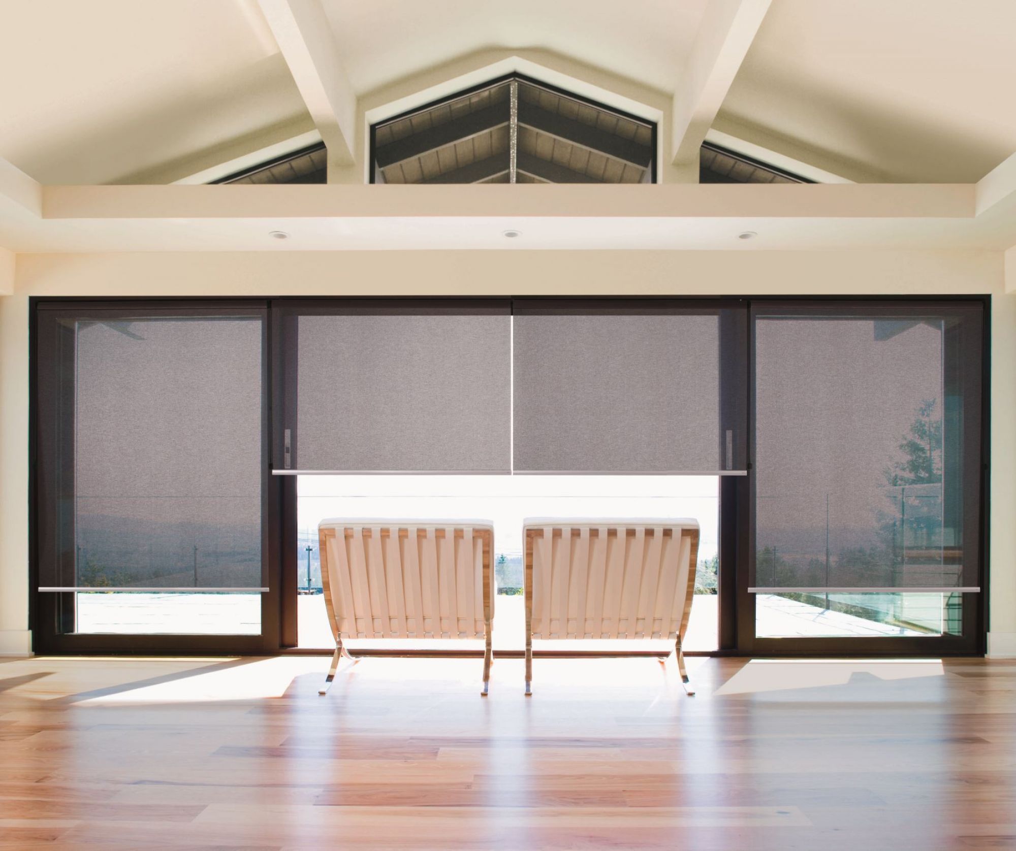Enjoy your view without the glare. Our sunscreen roller blinds offer a sleek and modern way to diffuse natural light while reducing the sun's heat and protecting your interior.