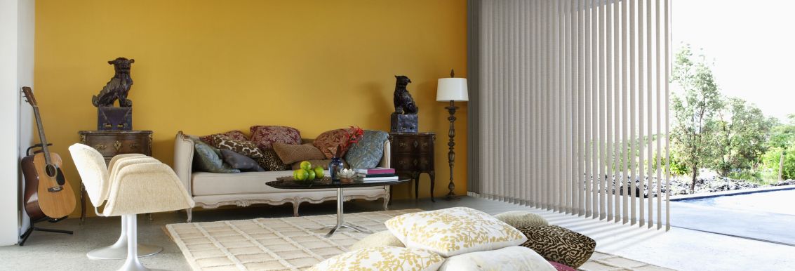 Vertical blinds provide privacy and light control, fit almost any window shape, and we offer them in virtually any colour – we can even colour-match vertical blinds to the walls of your favourite room!