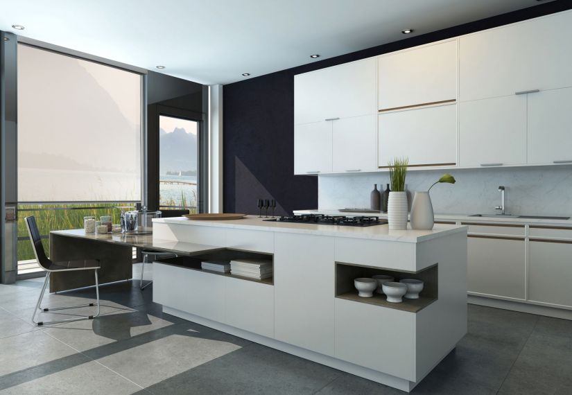 Developed in Australia, this innovative track-guided system glides smoothly at the touch of a finger, with no cords or chains, making it both stylish and child-safe.
