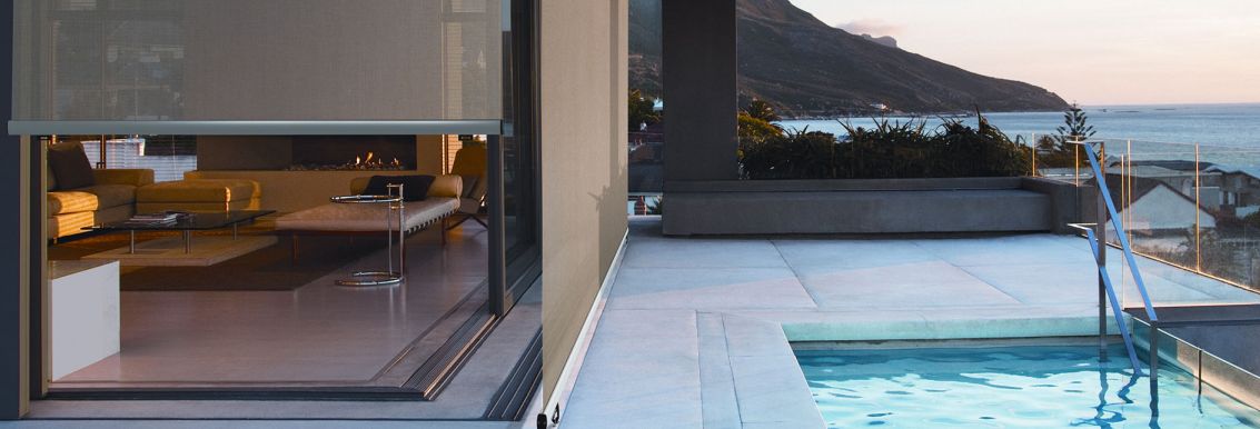 Alpha side retention system awning – a premium, versatile straight drop option ideal for sun and UV protection, insect resistance and where wind is an issue. Great for creating privacy, and controlling light and heat. The system can fully enclose an outside area, with no gaps for dust and dirt to enter – ideal for enclosing courtyards, patios or balconies, essentially adding an extra room to the home.