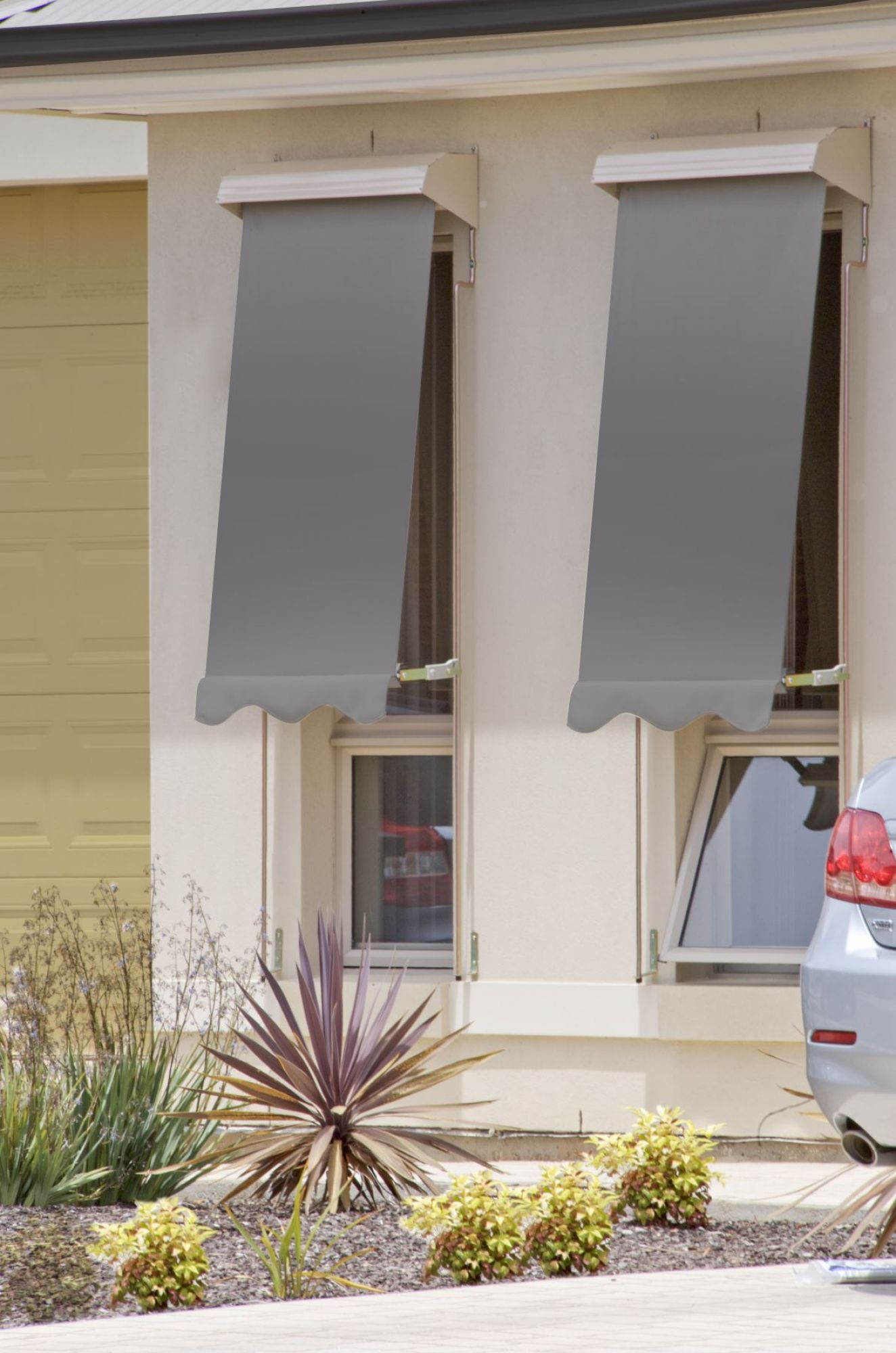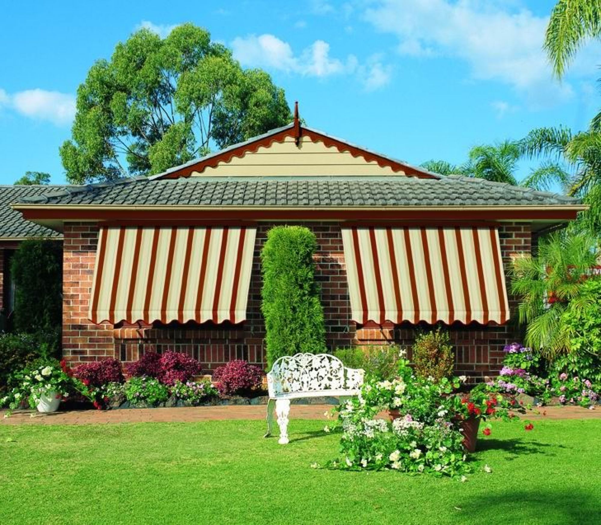 Self locking awnings keep the harsh Australian sun at arm’s length from the windows in turn reducing the heat entering your home saving you on cooling costs. Easy function, self-locking arms make the Standard Auto Awnings a breeze to operate.